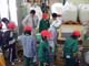 午後1時50分、全校で、豊玉東小学校の6年生と職員の方々をお迎えしました。金管バンドの演奏で、花のアーチをくぐって入場してもらいました。