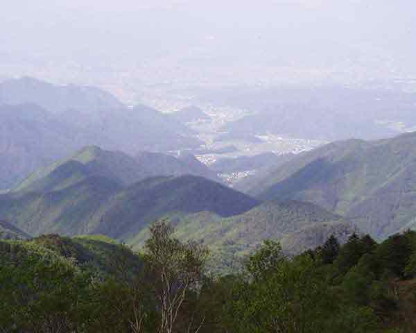 途中からときどき武石村の集落が見えるコースで、子どもたちの家や学校方面がよく見えました。 |