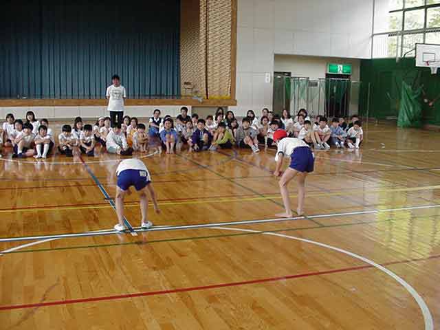 劇団がやってきました。うさぎがトンチを使ってトラやワニをやっつけちゃうお話でした。 |