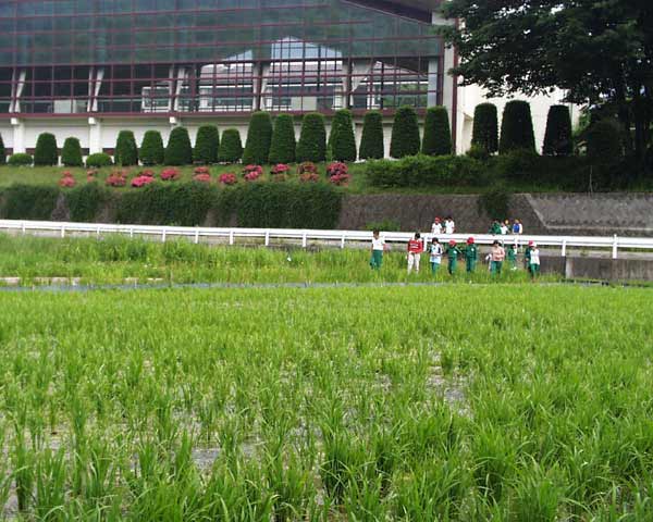 夕方、お母さん方が、また来てくれて、田んぼの草取りをしてくれる。 |