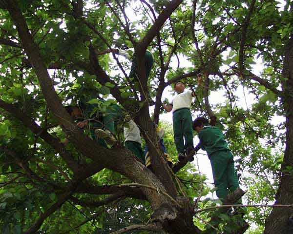 教室へ帰る途中に大きな桑の木へ上って、ちょうどあまずっぱくなった桑の実をみんなで食べました。男子が木に上って、女子にとってあげていました。 |
