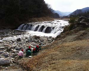 たくさんの石やゴミを拾った後は、田んぼがとてもきれいになりました。武石川へどろのついた靴を洗いに行ったら、そこで黄鉄鉱の結晶を拾い始める人もいました。 |