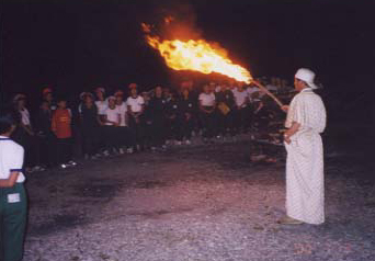 キャンップファイヤーでは、火の神からいろいろな火をもらい、歌、ゲーム、フォークダンスができました。