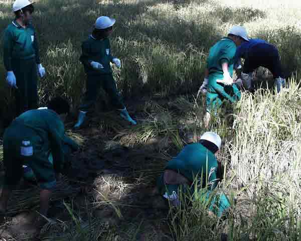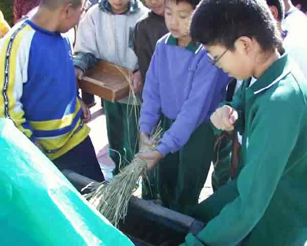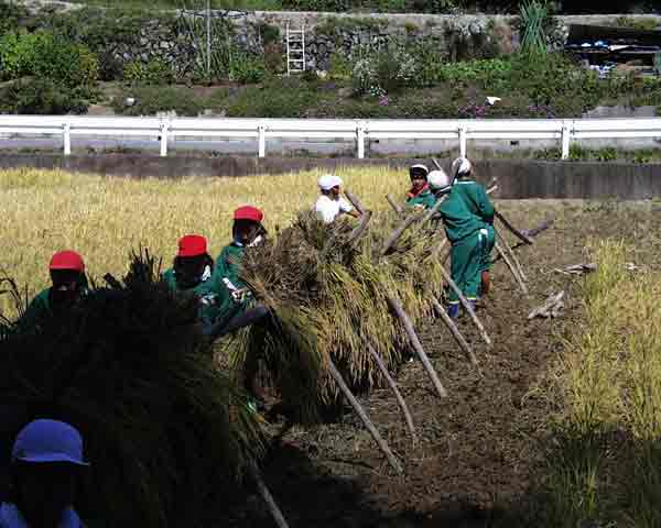 脱穀 ![]() 稲刈り、はぜかけをして1ヶ月。脱穀をしました。 ![]() 4台の脱穀機を田んぼに入れて、どんどん脱穀をしていきました。 ![]() 子どもたちは、自分で仕事を見つけたり、気をつけたりして、どんどん働きました。 ![]() あっと言う間にもみの入った袋が軽トラいっぱいになり、田んぼもきれいに片づきました。 ![]() |