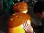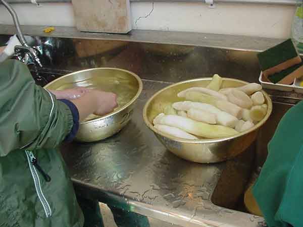 クラスの畑でカボチャを作っていたのですが、どんどんつるが伸びて他の学年の畑にも迷惑をかけながら、できたカボチャです。重さは一番重いのが17kgありました。 しいたけ栽培は4年生のときに菌を打ち込んだものが、ようやく収穫になりました。ちょっと取り忘れると、20cmを越える大きなシイタケになります。子どもたちは全員で取りきれないほど収穫しました。 さっそく、家庭科室でお料理です。 肉厚の重量感のあるシイタケを切って、フライパンで焼きました。 味付けは、「醤油ないの。」 「バターがいい。」と言っていたけど、 なかったので、塩にこしょうに、ソースという変な味付けになりました。 けっこう食べて、あとは持ち帰りました。 稲刈りは、2年生といっしょに、やさしく教えてあげて、できました。 落ち穂拾いも進んでできた人がたくさんいました。 |