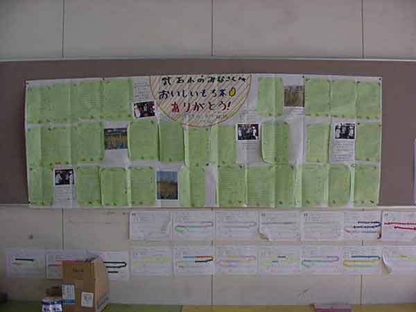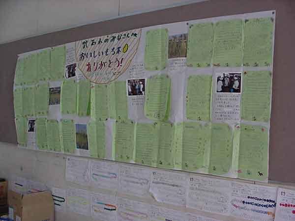 | 12月29日(金) | 大泉学園緑小学校から手紙が届きました。 5年生の寄せ書きと収穫祭の写真がはられたものです。 武石から送ったもち米を使っておもちつきをして、おいしくいただけたと書かれていて、うれしく思いました。いねかりがいっ しょにでき、御神楽を舞っていただき、本当にありがとうございました。 ![]() |