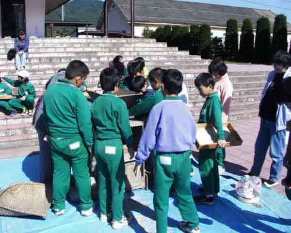 収穫祭 5年生の田んぼでの米作りのしめくくりとして、収穫祭をしました。おもちをつき、とんじるを作って、お世話になった方々をお呼びして、お礼と収穫の喜びと今までの苦労をねぎらう会をしました。 ![]() 子どもたちはよく気づき、いろいろな仕事を進んでこなしていました。 ![]() かまどで火をたくのも上手でした。もちつきも子どもたちだけでできるようになりました。 ![]() ときどき、つまみ食いをするのが、たまらなくおいしかったです。おいしい収穫祭になりました。 ![]() ![]() |