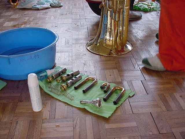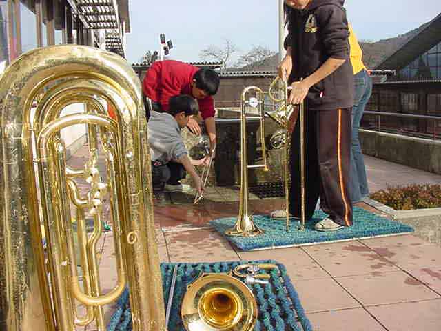 ラストコンサート 金管バンドの最後のコンサートが今日の午後、開かれました。6年生は、2年間毎日練習をして、いろいろな発表をして、今日が最後の発表でした。みんな、4年生の頃から比べて、とても上手になりました。 体育館の中は、たくさんの人が聞きに来てくれました。 12曲の演奏がありました。 6年生が、みんな出て、♪手のひらを太陽に♪の振り付けをしました。 水戸黄門の寸劇をしました。「ひかえおろ〜!」 コンサートが終わって、2年間使った楽器とお別れです。分解して、きれいに洗います。 きれいになった楽器が輝いていました。 |