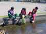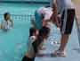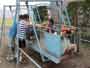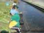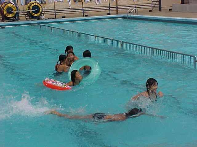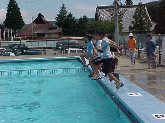 着衣水泳 昨日、プール納めがあり、今日は最後のプールで着衣水泳をしました。 子どもたちは、最初プールに入るのにとまどっていましたが、入ると、 「わあー重い。」「動きにくい。」「くっつく。」と言いながら、着衣の感触を覚え、 「背が立たないところだとおぼれちゃうね。」と言っていました。 終わった後は、家から持ってきた浮き輪やボートで最後のプールを楽しみました。 |