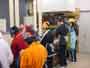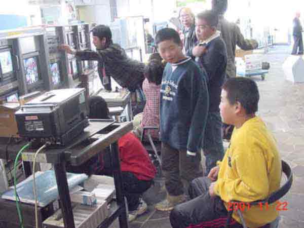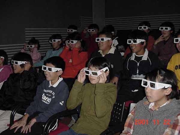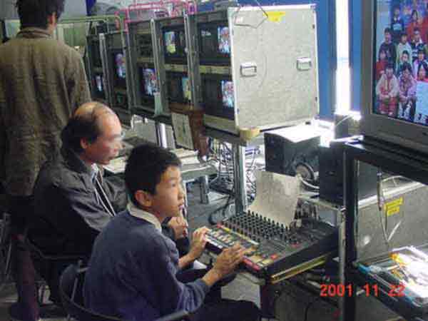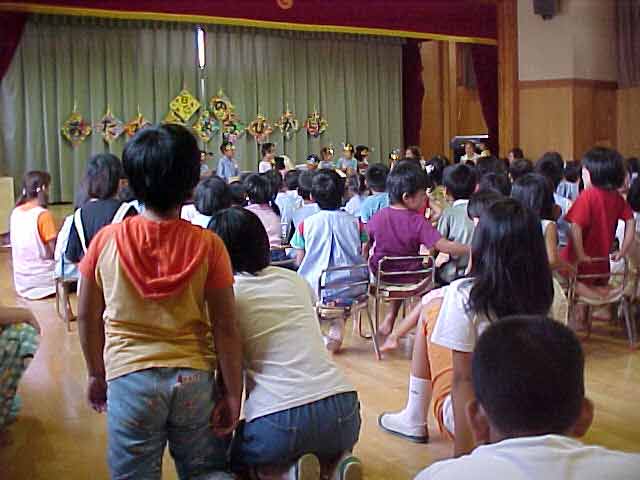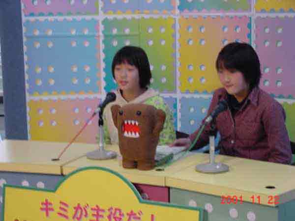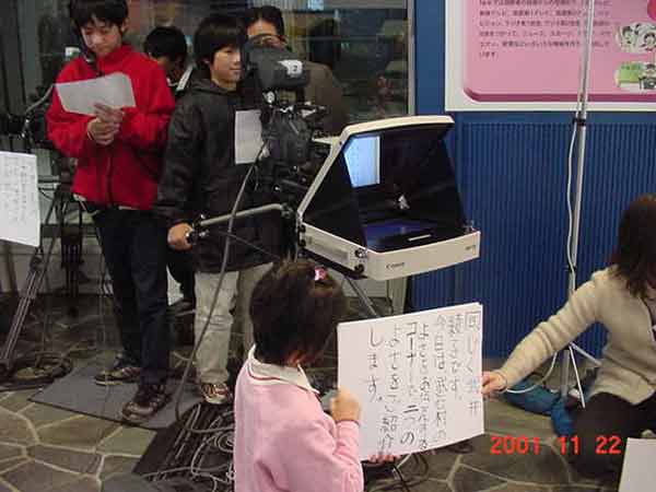 NHK放送体験 ずっと準備をしていた番組づくりの最後のスタジオ収録をしました。機械操作、キャスターなど、ほとんど全てのスタッフを子どもたちがこなして、番組を作り上げました。 ハイビジョンの立体映像を見ているところ 気象情報 体が消えて、首だけになった。 音声さん みんながんばっています。 2カメさんとFDさん。 キャスターの二人。スマイルスマイル。 2カメさんとFDさん。大きい声で指示を出していました。 オーディオディレクターさん、スウィッチャーさん、プログラムディレクターさん、みんな連絡を取り合って、ひとつの番組づくりに取り組んでいます。子どもたちの感想は、 「緊張した。」 「最初は難しいと思っていたけど、やっていくうちに簡単になった。」 「どーもくんの人形がかわいかった。」 「放送局の仕事がしてみたい。」 「いつもの勉強をしているより、こっちの方がおもしろい。」 |