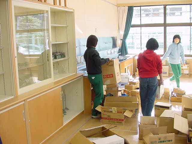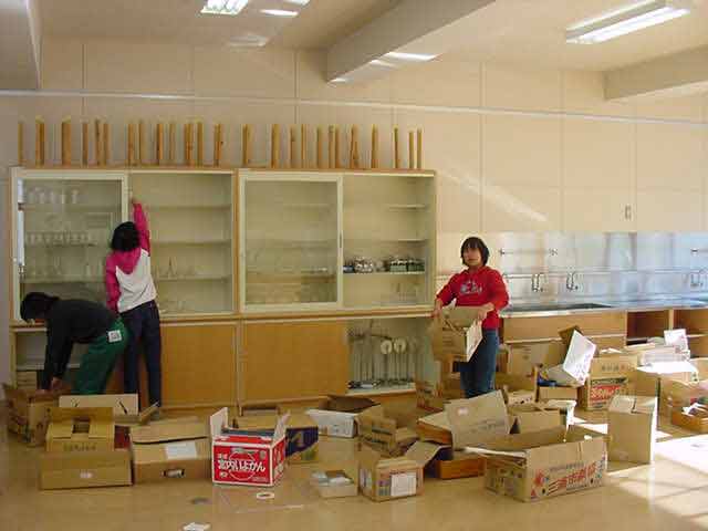 新特別教室完成 改築していた特別教室が完成し、理科、図工、家庭科、音楽の備品や、社会科、算数の備品、古文書などを移動しました。また、5,6年生の教室を特別教室に移動しました。大変な量で2日がかりでの移動になりました。 新しくきれいな教室に、子どもたちは大喜び。「木の香りがいい。」「きれい。」「床がきれい。」「あったかい。」などの声が上がりました。 木がたくさん使われて、とてもきれいです。 理科室に運んだ備品を棚に入れる。 早速、移動した教室での給食。こぼしたものをすぐ拾ったり、机の上の消しゴムのかすなども手にとって、ゴミ箱に捨てていました。 今まで使っていた教室とお別れです。引っ越し作業の合間をぬってお別れの写真を撮りました。 |