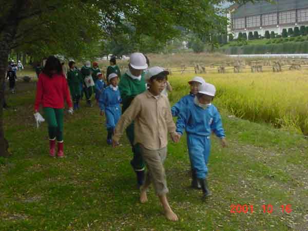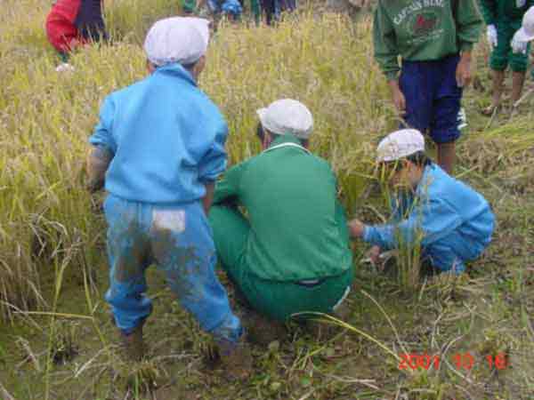 稲刈り 1年生と稲刈りをしました。6年生が1年生の手をとり、田んぼへ行きました。 1年生にやさしく教えてあげていました。 ![]() 終わった後は、学校の中を流れる大せぎで長靴を洗います。 ![]() |