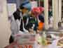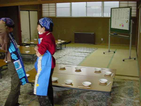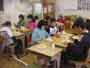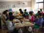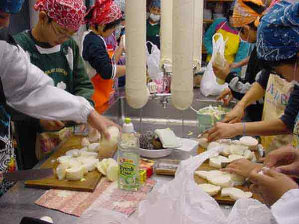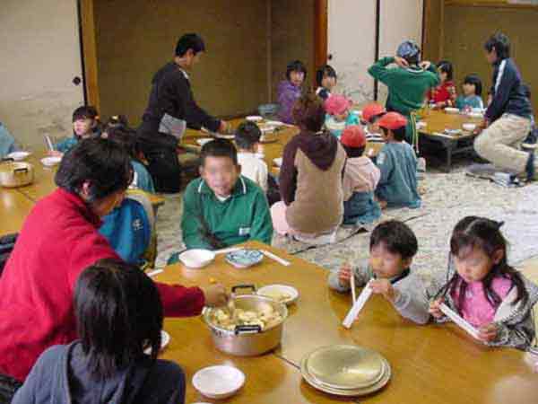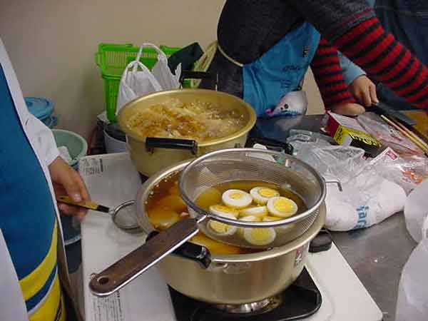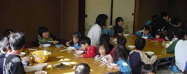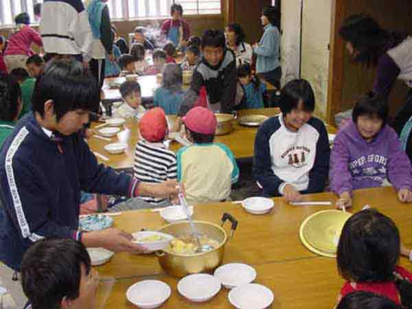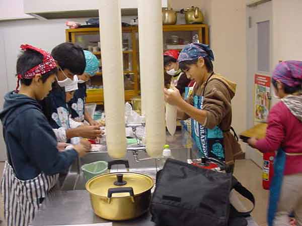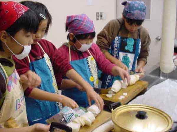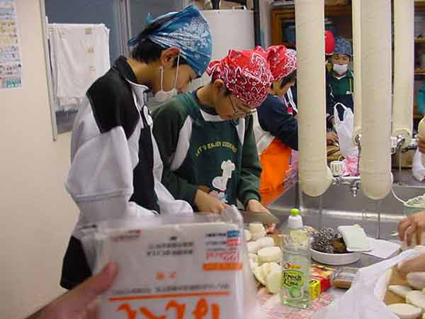 おでん会 昨日ぬいた大根で、おでんを作りました。学校の家庭科室は改築中なので、村の公民館の調理室を使わせていただきました。子どもたちは、てきぱきと仕事を分担して1時間でおでん作りと会場設定をしてしまいました。 ![]() ゆでたまごを切って入れてしまったと、黄身が汁にとけていかないように工夫していました。 ![]() 会場づくり 保育園の年長さんたちが、やってきました。あいさつをして、「いただきます」元気いっぱいです。「おいしい」、「味がしみてる」、「大根がやわらかくて、おいしい」という感想がいっぱい聞かれました。 |