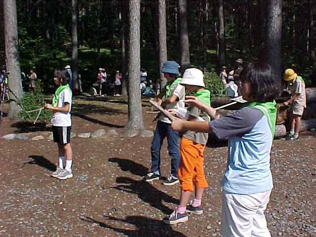 緑の少年団のキャンプがありました。 開会式の後、最初に除伐を行いました。落葉松林の下に生えている小さな木をのこぎりで切っていきました。 長野朝日テレビが取材していました。 除伐の後は、とても明るく、きれいになりました。 次に、さっき切ってきた木でパチンコを作りました。出来上がったら、早速まと当て大会です。見事命中した人には、賞品として絵はがきが手渡されました。 夕食は、お好み焼きとスペアリブのポトフです。みんなで作って、自然の中で食べるのは、とてもおいしかったです。 2日目はフォトスタンドを作りました。いろいろな豆や木の枝などを使って、世界にひとつしかないオリジナルフォトスタンドが出来上がりました。 楽しい二日間になりました。 |