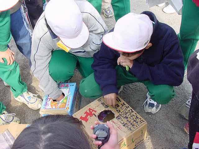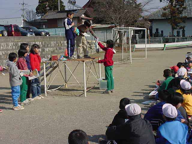 ミニオリンピック 児童会のなかよし委員会による全校ミニオリンピックがありました。子どもたちが考えた種目を子どもたちが準備運営して、1年生から6年生までの縦割り班でいろいろなゲームに挑戦していきます。小さな学年の人ができるものを選んだり、やさしくしてあげたりして、チームワークよく楽しめていました。 開会式の児童会長あいさつ 全部で20グループあります。 のぼり棒に挑戦。 ペナルティーキック。小さい人たちは前からけって、ボールをとらないようにしていたね。 輪投げをしたり、砂場で穴ほりをしたりしています。 先生の声を録音したものを聞かせて、誰先生か当てるゲームです。耳をすませていました。 ボーリングに挑戦。ストライク! シートくぐり。やりたい人がいっぱい。 物当てゲーム。箱の中に手をつっこんで、中の物をさわって当てる。 50m走。低学年は15秒ぐらい、高学年は8〜10秒で走ろう。 校庭のあちらこちらで、歓声が上がりました。 表彰式。3位までメダルがもらえました。 |