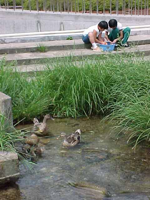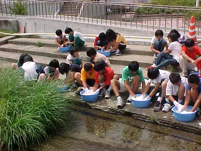 川でせんたく 家庭科の時間の学習で洗濯をしました。 ちょうど、学校の中を流れる大堰の岸で洗濯しました。 ![]() ももは、どんぶらこっこと流れては来ませんでしたが、 カモの親子が洗濯の様子を見ていました。 ![]() かもは7月に8羽生まれたのですが、元気に育ったのは3羽でした。 とても微笑ましく、のどかな光景でした。 |