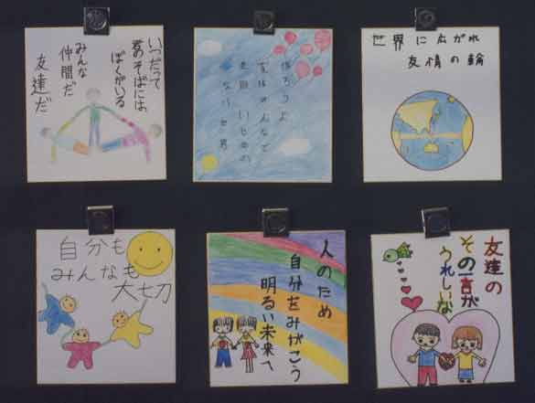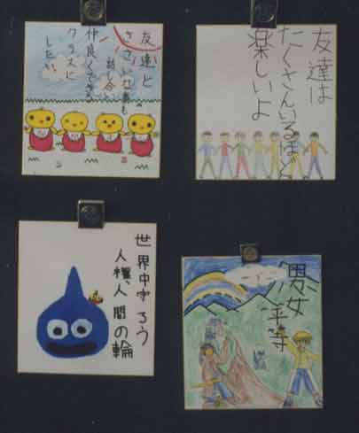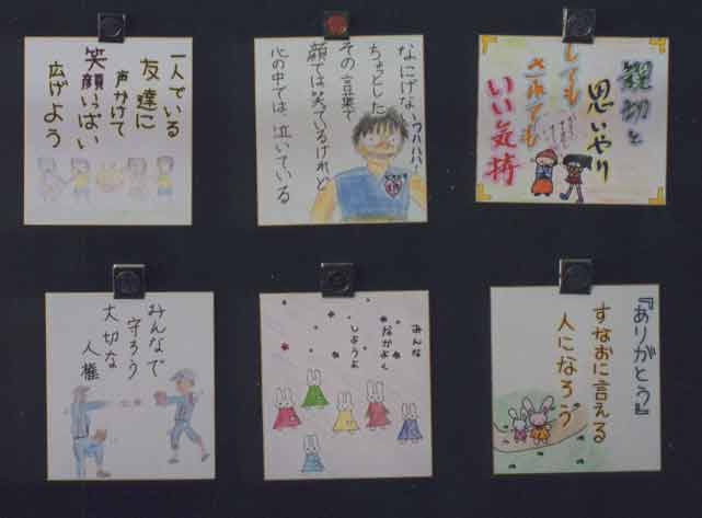同和(人権)教育参観日 たくさんの保護者や地域の方々が学校を訪れ、参観をしてくださいました。6年生は、『解放子ども会』について学習しました。差別を見抜き、差別を許さず、差別に立ち向かっていく解放子ども会に学んでいこうという学習です。髪の毛のことで悪口を言われ、いじめられている女の子を励まして、立ち向かう勇気を持たせてくれたのは、一人の女の子と解放子ども会でした。クラスのみんなが、差別やいじめに立ち向かっていかれるようになると、もっともっといいクラスになると思います。 その後、親子で人権色紙を作りました。どれも個性的で、すばらしいものです。農協やスーパーマーケット、郵便局、公民館、そろばん塾などに、飾っていく予定です。 ![]() |