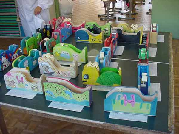秋晴れの下、大根ほり 畑の大根が大きくなってきました。今日は、明日のおでん会のための大根ほりです。班で1つ大きな大根を抜きました。学校を流れる大堰で洗って、白くて艶やかな大根になりました。 給食はカレーライスでした。窓の外の桜の葉は赤や黄色に輝いています。 テープカッターが全員仕上がって、展示してあります。どの作品も個性が光っていて、力作ぞろいです。電動糸のこを使って、きれいな曲線でできあがりました。 ![]() |