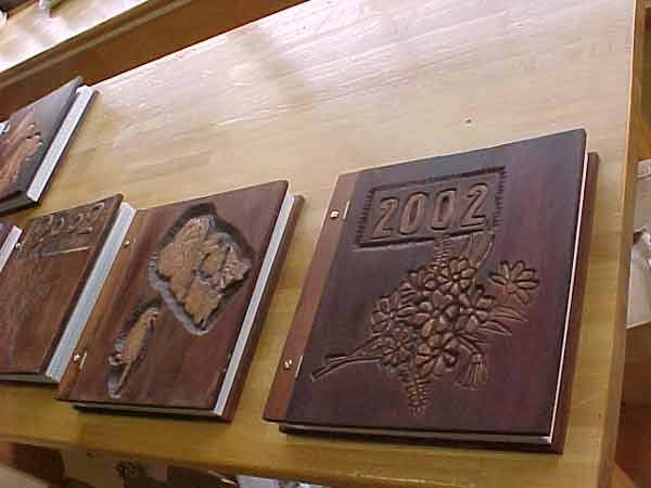 卒業アルバムの木彫り