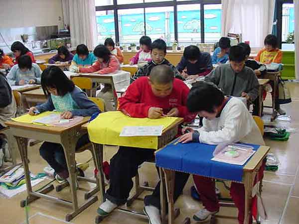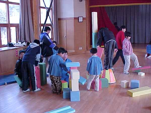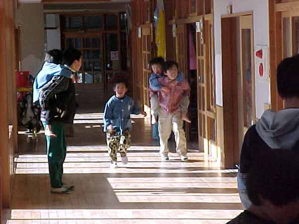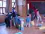 新しくなった教室の廊下で、行いました。