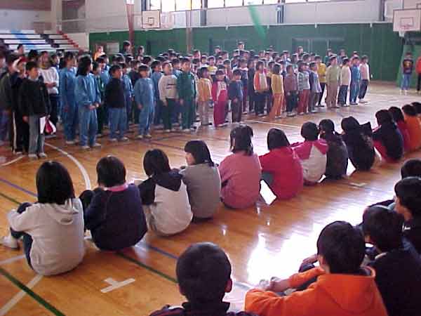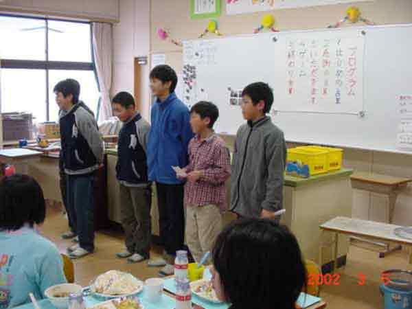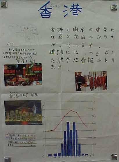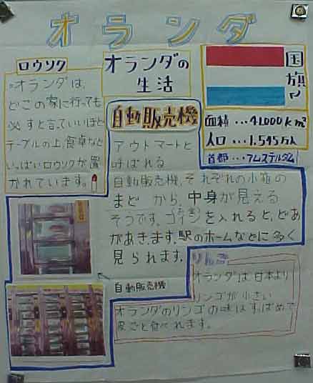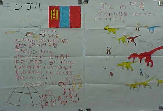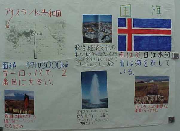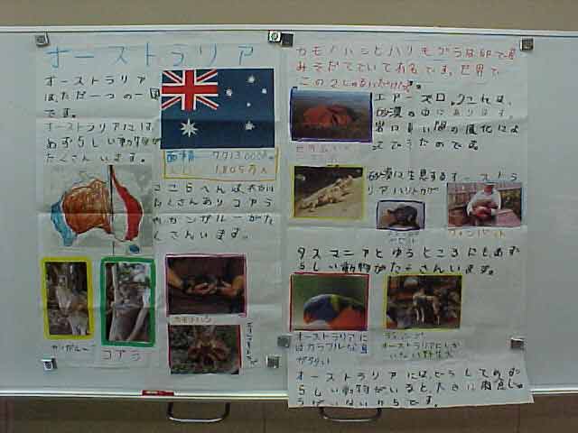 授業は、社会科で、一人一国の発表をしました。ソルトレイクのオリンピックやワールドカップなどで、外国の名前がよく出てくる時期で、子どもたちも興味を持って、調べ、まとめ、発表できました。