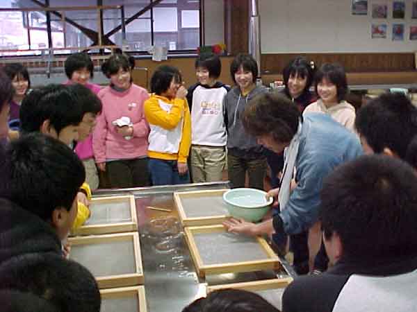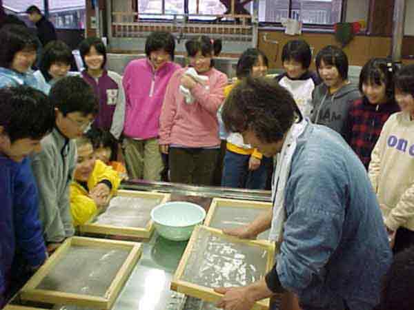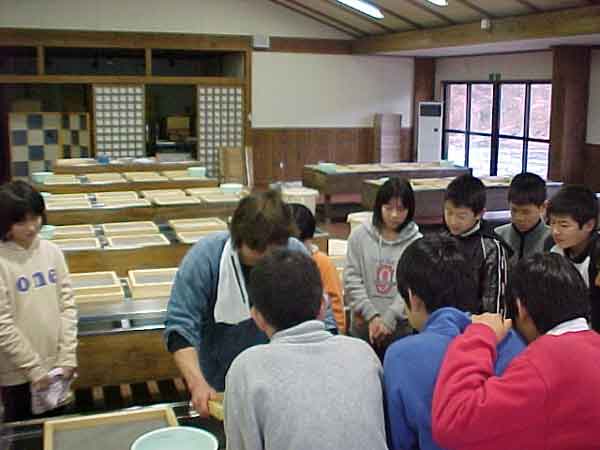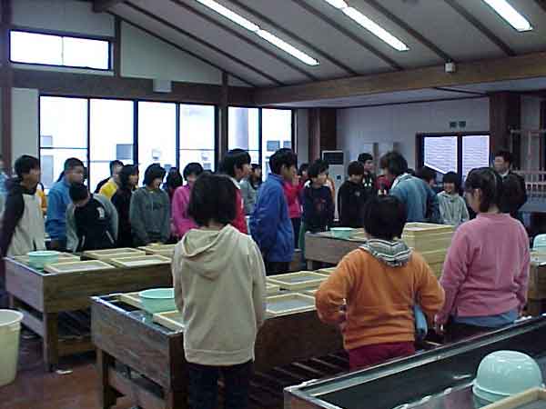 自分の卒業証書を自分の手作りの和紙で作ってもらおうと、長門町にあるふるさとセンターへ行きました。説明をよく聞いて、ひとり一人、ていねいに和紙を作りました。