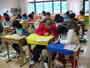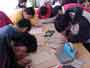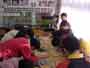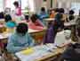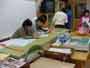 思い出のアルバムの表紙づくりが、だんだん仕上がってきました。野球の様子、校章、花、鳥など、それぞれが思い思いの絵を彫っています。この日は、4人の人が色をぬり始めました。