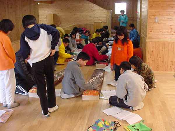音楽の時間にお正月らしく、お琴の演奏をしました。班に1つの琴を順番に練習して、♪さくらさくら♪をを演奏しました。