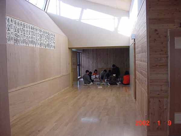 壁には、書き初め展の習字が飾られています。 |
