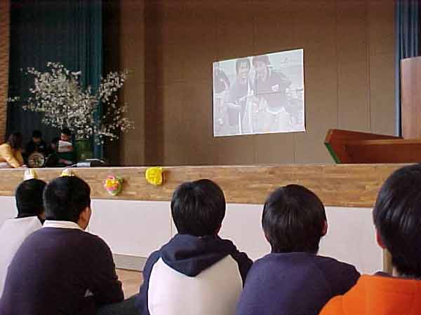6年生のなつかしい写真を見ながら発表してくれました。