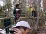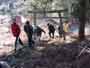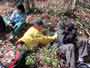 下りの尾根で休憩して、落ち葉の上に寝転がる