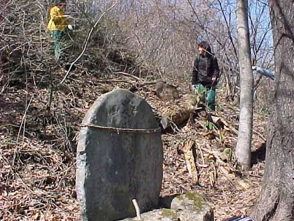 11:42余里入り口に到着 尾根を下り終えたところにある石塔