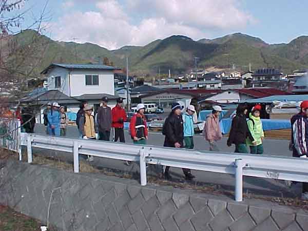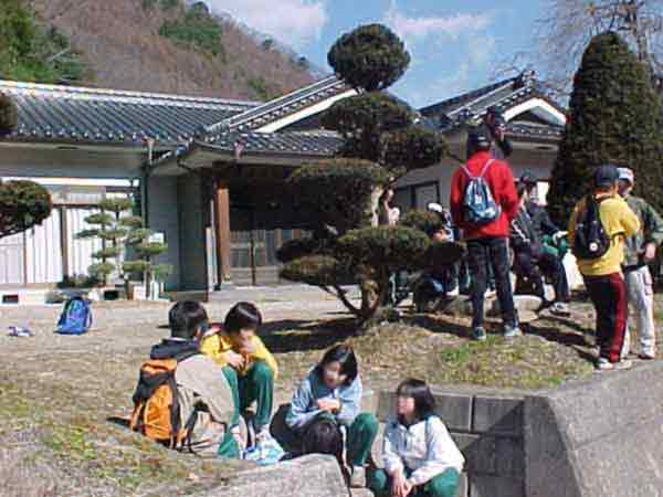 9:25余里公民館着 後ろの山が浅間岳