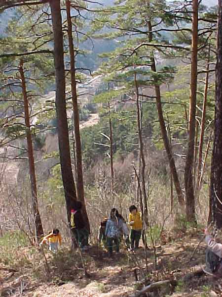 赤松林の中を登る
