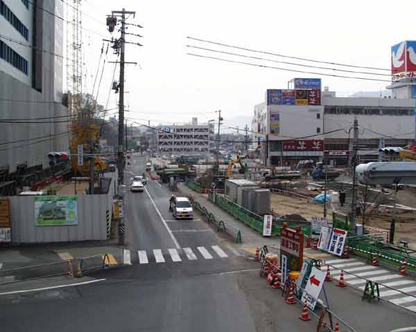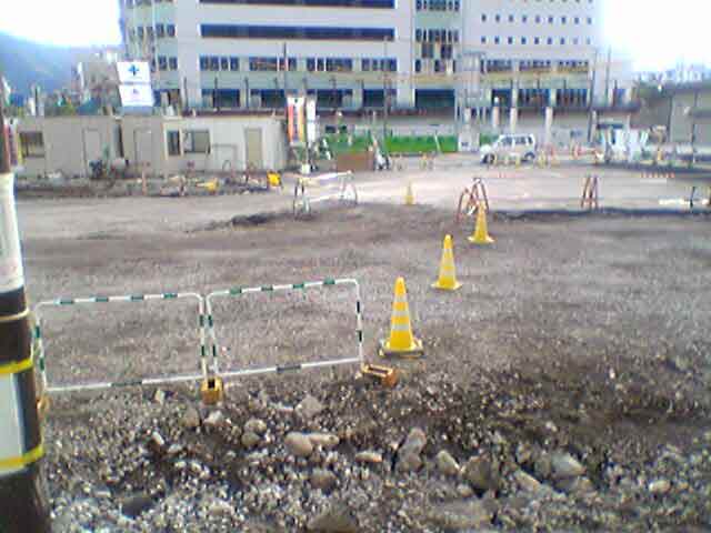 | 駅前の建物が壊され、新しいビル建設の工事が始まっている。 | |
