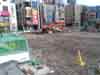 左側のビルがベールをぬぎました。前の道路の歩道が東の方からできてきています。 |
